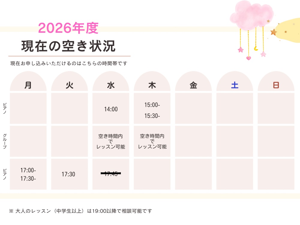 体験レッスンご希望の方もレッスン日の中からお選びください。