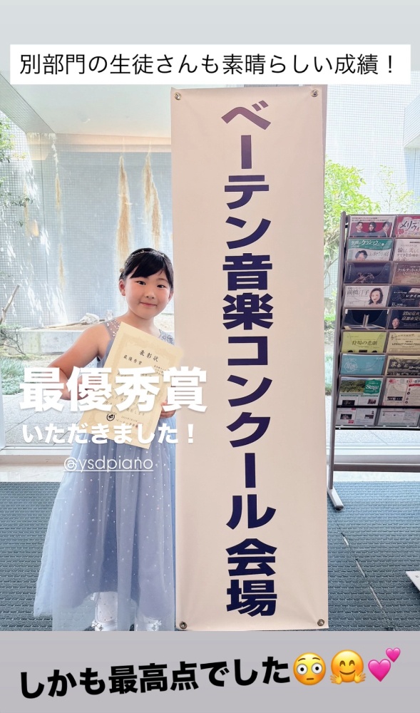 生徒は練習通りの演奏を出しきる事ができ、9人いた中で最優秀賞をいただく事が出来ました。